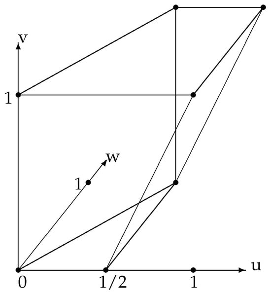 six faces, two rectangles, two trapezoids, two triangles, and eleven edges. Such polyhedrons are called hemicubes because they are linearly equivalent to a polyhedron obtained by cutting the unit cube by half by the surface containing two opposite vertices (for example, and ) (Figure 1).