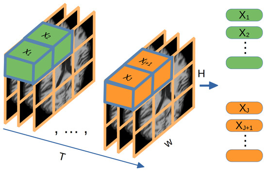 - 3D Vision Transformer: This study uses ViViT: A Video Vision Transformer [31], a pure Transformer-based model, to classify AD MRI 3D ROIs. Figure 3 shows the Tubelet embedding method used to extract non-overlapping spatio-temporal “tubes” from the input volume and linearly project them to . This method extends ViT’s embedding to 3D and corresponds to a 3D convolution. For a tubelet of dimension , tokens are extracted from the temporal, height, and width dimensions, intuitively fusing spatio-temporal information during tokenization [31].