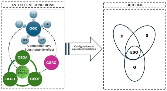 Considering this, we apply a configurational analysis [59] to examine how good governance practices interact with different CEO profiles and the presence of a CSR Committee (antecedent conditions) to shape BoD configurations (or bundles) in order to achieve high ESG scores (outcome) (Figure 1). To the best of our knowledge, a combinatorial analysis of these variables in Spanish-listed companies has not been conducted.