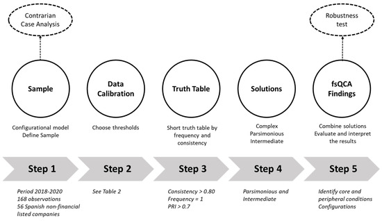 As discussed in previous sections, the first step involves designing the configurational model and selecting the sample. In this step, a counterfactual analysis is recommended to detect possible asymmetric associations contrary to those represented by the regression models, which confirms the need for a configurational analysis [67].
