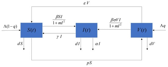 Vaccination is crucial for eliminating infectious diseases, such as hepatitis B, measles, smallpox, poliomyelitis, and so on [8,9]. Since the pioneering work on smallpox of Edward Jenner (a doctor who worked in the UK and noticed that people infected with cowpox rarely contracted smallpox) [10], the practice of safeguarding individuals against infections via vaccination has evolved into a standard and routine procedure. However, achieving full vaccination coverage among all susceptible individuals within a given community remains a formidable challenge, particularly in nations where accessibility to such vaccines is hindered [11]. Certain clinical findings suggest that vaccines may confer only a temporary degree of protection against certain diseases. Hence, when a vaccine’s effectiveness diminishes within a vaccinated individual’s system, they once again become vulnerable to contracting the disease [12]. Consequently, identifying the optimal level of vaccination needed to eliminate a disease becomes paramount.