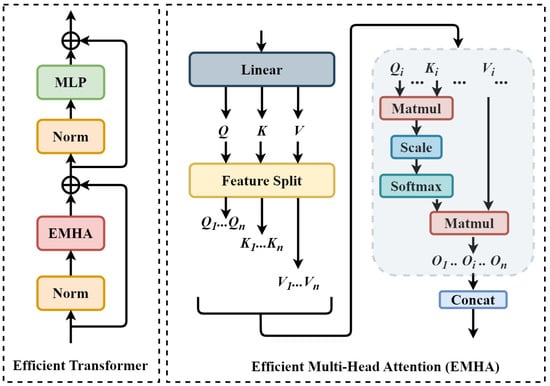 where signifies the Transformer module, and denotes feature reconstruction enhanced with global information. The reconstruction process can be expressed as