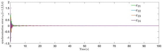 As the previous section concluded, we obtain the system synchronization error of system (24) in m-D as , where , . The synchronization error is as follows: