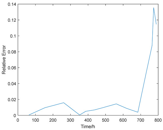 Relative error plot for stochastic differential equation model of gearbox oil temperature.