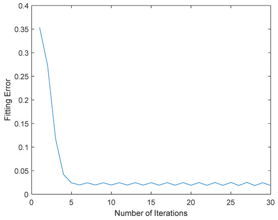 As can be seen in Figure 4 and Figure 5, as the number of iterations increased, both the fitting error and the test error stabilized and were smaller than before the iterations. The fitting error eventually stabilized at around 2%, and the testing error eventually stabilized at around 8%, which optimized both the fitting and generalization effects after the iteration, compared to 35.36% and 11.46% before the iteration. It can also be seen that the fitting error tended to stabilize around eight iterations and had a tendency to disperse as the number of iterations increased, and the test error gradually became smaller as the number of iterations increased. However, after the fifteenth iteration, the degree of reduction in the test error with the increase in the number of iterations was no longer significant. The results of the above analysis show that having a higher number of iterations was not necessarily better, and the number of iterations may be too high, which may result in the dispersion of the data and waste of resources.
