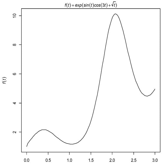The non-parametric component of the model (30) is presented in Figure 1. This wave function is challenging to predict and offers a useful example for testing the proposed estimation techniques. All calculations were performed with R 4.3.1, the statistical software program. Table 1, Table 2, Table 3, Table 4, Table 5, Table 6, Table 7, Table 8, Table 9, Table 10, Table 11, Table 12, Table 13 and Table 14 present a summary of the results. After iterating the process for all simulations, the minimum, maximum, mean, median, and standard deviation values of the mean squared errors of the linear and non-linear estimators are reported in Table 1 and Table 2, respectively, where