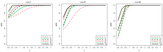 The relationship between and the ARRs under different cases for various sample sizes with k = 3.