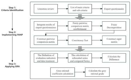 The research process is divided into three main steps. The first step is to establish evaluation indicators. We determine the main and secondary criteria that affect the deployment of AED through a literature review and expert interviews. Next, we design and distribute a questionnaire to collect opinions and data from experts in the field. The second step is to implement the FANP. Based on the results from the expert questionnaire, we calculate the FANP to obtain the weight ranking of the main and secondary criteria. The third step is to apply GRA. Using the results from FANP, we apply GRA to identify the relationship between the secondary criteria and the main criteria. Through these three steps, we can rank the effectiveness of indicators for optimizing AED deployment. We can also identify which secondary indicators need to be strengthened to improve a specific main indicator. This will provide effective support for optimizing AED deployment in China.