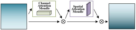 The Convolutional Block Attention Module (CBAM) is a lightweight convolutional attention module, as shown in Figure 7, which combines two sub-modules: the Channel Attention Module (CAM) and the Spatial Attention Module (SAM). The CAM focuses on channel-wise attention, while SAM focuses on spatial attention. Together, they enhance the model’s capability to attend to both channel and spatial information.