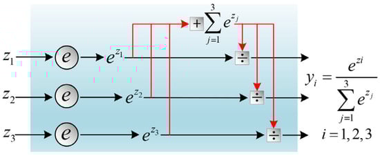 The output obtained through the processing of the GAP layer is an N-dimensional array that contains inconsistent values and does not conform to the probability distribution. In order to better train the model, a Softmax classifier is placed after the GAP layer for model accuracy evaluation, to facilitate error backpropagation. The schematic diagram of Softmax is shown in Figure 9.