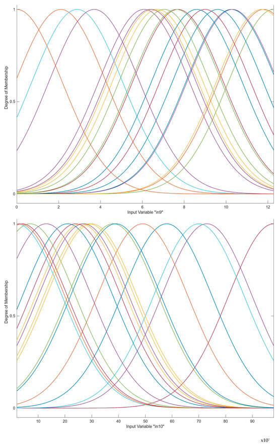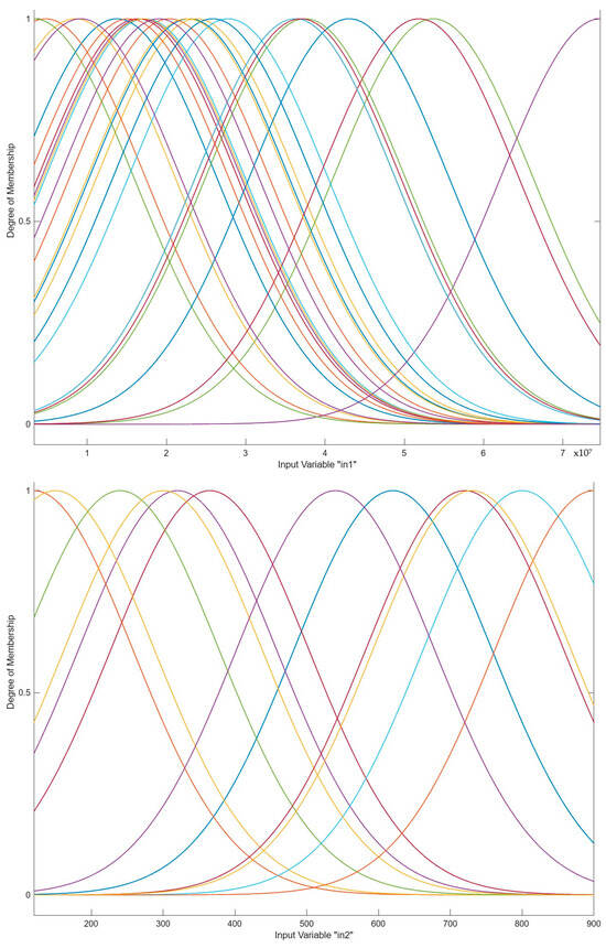 It is important to emphasize the significance of hyperparameters in the Sugeno fuzzy inference system (FIS), as they play a crucial role in determining the performance, efficiency, and accuracy of the system [53,54]. The number and type of membership functions per input variable determine how many fuzzy sets (e.g., low, medium, or high) are assigned to each input variable and which type of membership functions are used (e.g., Gaussian, triangular, or trapezoidal). A larger number of membership functions can capture more nuances in the data, but this increases the complexity of the model and the risk of overfitting. The type of membership function affects the smoothness or sharpness of the transitions between fuzzy sets. Gaussian functions provide smooth transitions and are more resistant to noise, while triangular functions are simpler and less demanding in terms of computation. When it comes to the number of fuzzy rules, having more can improve the accuracy of the model by capturing finer relationships between inputs and outputs, but this increases computational complexity. As for the shape of output functions, the Sugeno FIS typically uses linear or constant output functions, where linear functions can capture more complex dependencies between inputs. Linear functions provide greater flexibility but increase the number of parameters to be adjusted. Constant functions are simpler, but they may not adequately capture complex relationships. The rule base, as a very important factor, depends on the number of rules in the system. This number depends on the combinations of membership functions of all inputs and can grow exponentially with the number of input variables and their membership functions. The method of reasoning and defuzzification has been discussed in the previous part of the chapter. Hyperparameters directly affect how the Sugeno FIS interprets input data and generates outputs. The proper tuning of these parameters can significantly improve system performance, while poor tuning can lead to inaccurate or suboptimal results. Hyperparameter tuning often requires a balance between model accuracy and computational complexity [55].