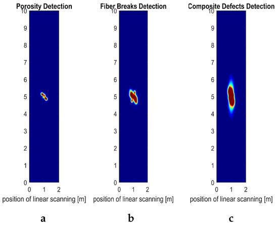 (a) With sub-surface porosity (); (b) numerical simulation with sub-surface fiber cracks (); (c) with all sub-surface defects present, including delamination, microcracks, porosity, and fiber cracks ().