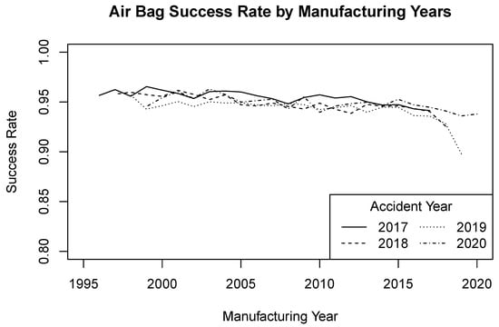 Manufacturers often carry out these tests before products enter the market, and we rarely test them in actual user conditions. To address this issue, we can refer to publicly available datasets that collect information from actual usage and retrospectively analyze the reliability of those products. For example, the Crash Report Sampling System (CRSS) of the National Highway Traffic Safety Administration (NHTSA) [2] has collected national crash data since 2016. It collects details of car crashes, including the status of airbag deployment. It provides a good data source for evaluating different car safety systems during the actual user conditions. This kind of retrospective study is vitally important as it can indicate potential problems in safety devices early and avoid disastrous replacements similar to the Takada airbag recall, see [1].