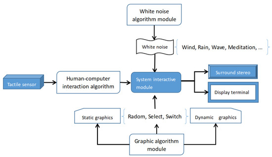The system is designed to implement user interaction for a better multi-modal user experience and testing experiments. It allows users to control the system’s sound intensity with a simple press, demonstrating the system’s adaptability and enhancing the user experience. In addition to inputting preset text into the mode to generate the corresponding type of white noise and dynamic graphics, the system integrates with external equipment to receive more user data and collect experimental data. For example, it connects a sound collection device with the output of the sound adjustment module to collect sound data. It also connects a tactile sensor with the input of the sound adjustment module to control some sound variables. This feature gives users a profound sense of empowerment and control over the system, enhancing their overall experience.
