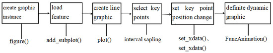 Feature graphics are then imported and stored by category in a database to create a graphics database using numpy tools, forming a static graphic database. This database connects with our proposed network model to provide corresponding graphics according to sound recognition results by DCNN. It must also create a dynamic graphic database to design different experimental conditions. The creation method of dynamic graphics based on the feature graphic map is a reliable process that can be consistently generated with the algorithm flow, as shown in Figure 6, and the specific description and pseudocode of this algorithm were detailed in the author’s previous study of Ref. [27]. To unify the dynamic visual effect, the motion of key points in the feature graphics adopts a dynamic effect of moving up and down according to a certain rule to drive the line to fluctuate up and down. Simultaneously, it sets the play speed of dynamic graphics to 12 f/s, which is a speed carefully chosen for its suitability for human eyes, respecting the viewer’s comfort and experience.