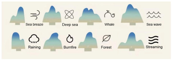 The generated ocean white noises and their corresponding dynamic graphics will be displayed on the system terminal screen. We have crafted eight displaying backgrounds that resemble mountains, each meticulously tailored to a specific type of white noise and its dynamic graphic, as shown in Figure 7, and the terminal display effect is shown in Figure 8. This design enhances the audiovisual effect and adds a unique aesthetic to system functionality.