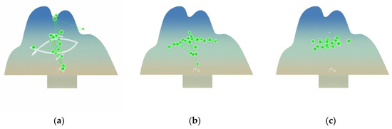 User viewpoint tracking map under different audiovisual environments. (a) Static graphic in white noise; (b) dynamic graphic in white noise; (c) dynamic graphic in silence.