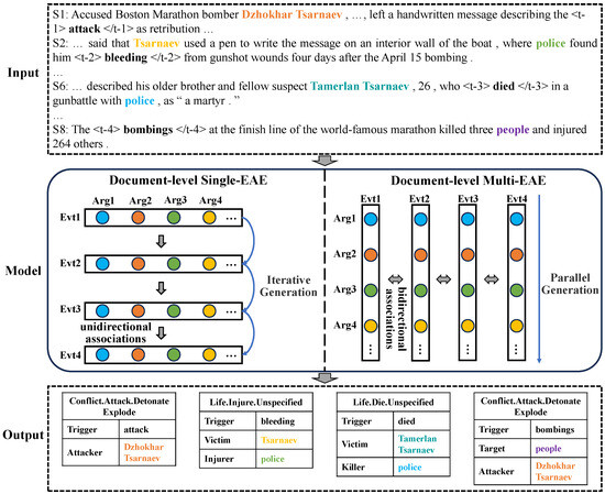- Yang, H.; Sui, D.; Chen, Y.; Liu, K.; Zhao, J.; Wang, T. Document-level event extraction via parallel prediction networks. In Proceedings of the 59th Annual Meeting of the Association for Computational Linguistics and the 11th International Joint Conference on Natural Language Processing (Volume 1: Long Papers), Virtual, 1–6 August 2021; pp. 6298–6308. [Google Scholar]