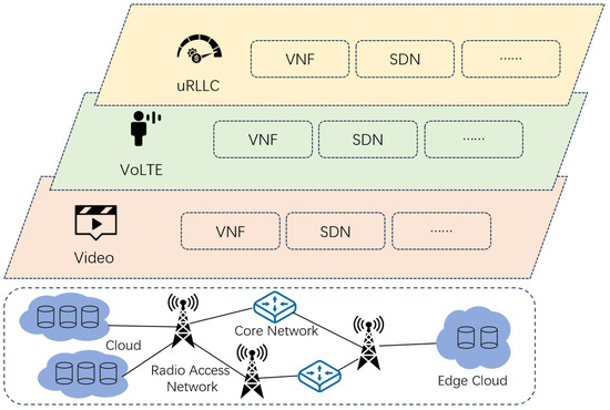 - Afolabi, I.; Taleb, T.; Samdanis, K.; Ksentini, A.; Flinck, H. Network slicing and softwarization: A survey on principles, enabling technologies, and solutions. IEEE Commun. Surv. Tutor. 2018, 20, 2429–2453. [Google Scholar] [CrossRef]