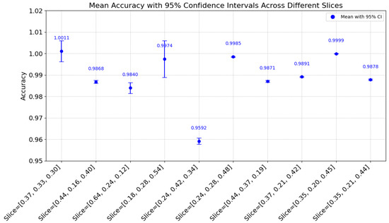 Mean accuracy with 95% confidence intervals across different slices.