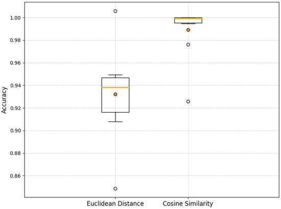 Comparison of accuracy and stability between matching using Ccsine similarity and Euclidean distance.
