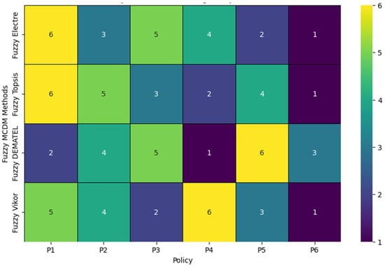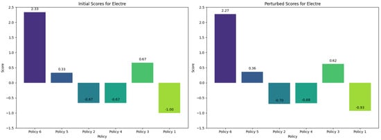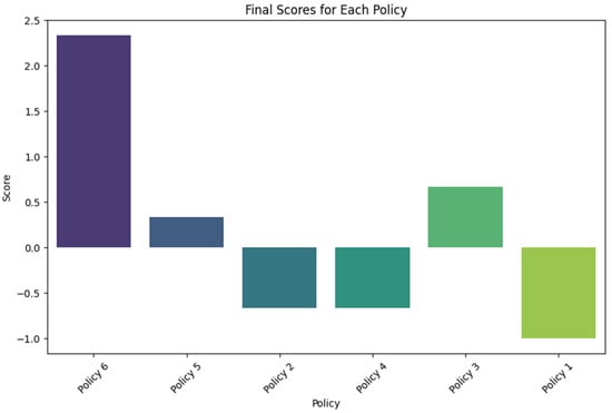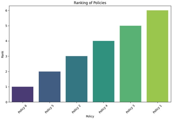 This methodological flow was implemented in Python using the basic functions: fuzzy_min, fuzzy_max, fuzzy_multiple, and fuzzy_compare. The first two functions are used to calculate the minimum and maximum elements of the fuzzy intervals, and the function fuzzy_multiple was used to calculate the product of the elements of the fuzzy intervals and the function fuzzy_compare to determine if all the elements in one interval are greater than or equal to the elements in another interval (concordance), but also to check if at least one element in an interval is smaller than the elements in another interval (discordance). The final scores for each policy will be determined by aggregating measures of concordance and discordance, thereby providing an assessment of the relative performance of each alternative. Based on these scores, policies will be ranked to identify the most effective solutions. We will also use graphical representations to clearly visualize these scores and the final ranking, making it easier to interpret the results.