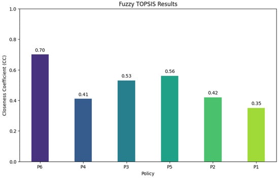 The Fuzzy Topsis algorithm was implemented in Python starting from the mathematical flow described above. Considering the decision matrix and fuzzy weights already defined, the first step performed in Python to apply the algorithm is to normalize the decision matrix to bring the values to a common scale. For normalization, I used the normalize_fuzzy function. After normalization, we will apply the previously defined fuzzy weights to each criterion to obtain the normalized weighted matrix. For each element in the normalized matrix, we will use the function fuzzy_multiply to multiply the fuzzy values with the corresponding weights. The next step is to determine the positive and negative ideal solutions that we will use to calculate the proximity coefficient. Later, we will graphically represent the results to visualize the appropriation coefficients of each policy.