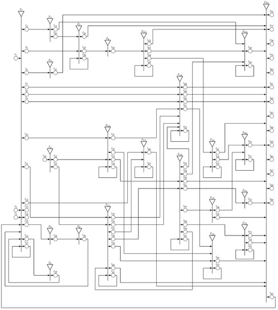In [35], the concept of a GN was introduced and in the 1980s it was proved that the functioning and the results of the work of each type of PN can be described by a GN. Thus, GNs are actually extensions of PNs. Like the other modifications of PNs, GNs have a fixed structure (transitions and places), but for each transition, an index matrix (IM, see [36]) is associated. The elements of each such IM are predicates representing the transitions’ conditions, i.e., determining the direction of tokens’ transfer. In addition, each token enters the GN with an initial characteristic, and during its transfer in the net, it obtains new characteristics.