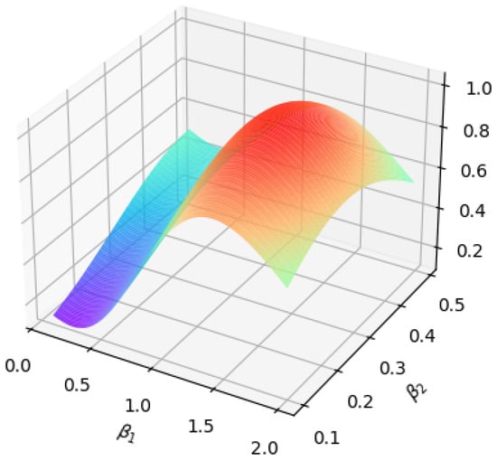 We adjusted two coefficient pairs with a step size of 0.01 to train the control policy and conducted 200 random target signal tests for each control policy. If the training is convergent, the final average reward is normalized. Then, ultimately, reward the highest combination of coefficients as our control policy. The results in Figure 6 show that different combinations of coefficients lead to performance differences. When is too large, the stability of the aircraft will be affected, and the angle of attack and sidescale angle of the aircraft will be greatly shaken, which will lead to the aircraft stall or tailspin. When is too small, the plane’s rudder angle is too small, which reduces aircraft maneuverability.