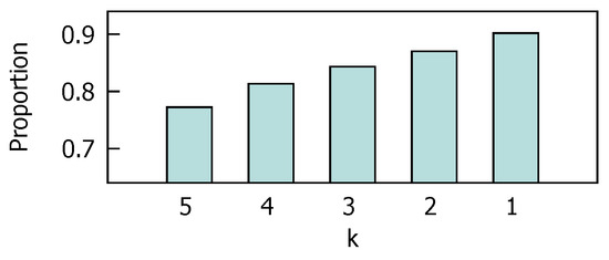 Figure 5. The proportion of data being correctly predicted by at least k experts.