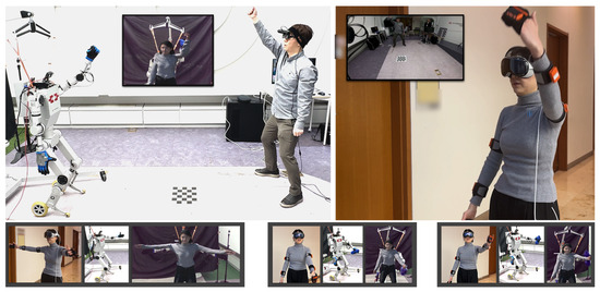 Our prototype system utilizes various sensor data for real-time telepresence. The inertial sensor-based motion capture for the remote user is updated at 60 Hz, and the captured motion is transmitted wirelessly to the humanoid robot, which updates its pose at 120 Hz. Fast motions exhibit a delay of approximately 0.5 s in the robot’s teleoperation.