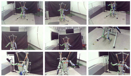We recorded various types of motions from different viewpoints using multiple cameras. For the training dataset, we collected 14 sequences for Robots V1, V2, and V3, as shown in Figure 3, using ten synchronized fixed cameras and three moving cameras. Each image sequence was uniformly subsampled for annotations. The joint locations of the full body were manually annotated using the annotation software [60].