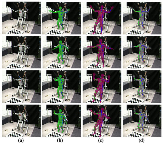 - Loper, M.; Mahmood, N.; Romero, J.; Pons-Moll, G.; Black, M.J. SMPL: A Skinned Multi-Person Linear Model. ACM Trans. Graph. (TOG) 2015, 34, 1–16. [Google Scholar] [CrossRef]