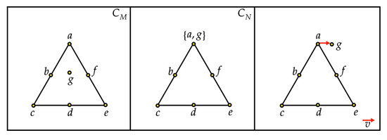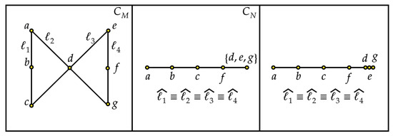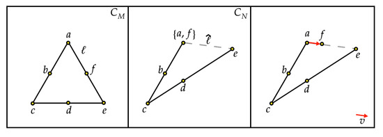 Here, on the l.h.s., there is another representation of point 6; conversely, on the r.h.s., there is a point in the line . Since by construction , the equality above may hold if and only if both sides give , that is if and only if . The thesis follows. □