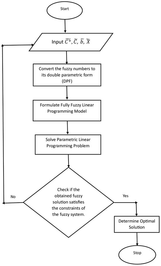 This paper is structured as follows. The next section provides definitions and basic properties of fuzzy numbers to facilitate an understanding of their positive and non-negative characteristics. It also covers the concepts of the single parametric form (SPF) and DPF of TFNs. Section 3 formulates FFLP problems, examines the existence of solutions for FFLP problems with inequality constraints, highlights the significance of the and parameters, and outlines the fundamental steps of the research. Section 4 introduces the new method, accompanied by a flowchart in Figure 1 illustrating the approach. Section 5 presents numerical examples to demonstrate the proposed method, along with a comparison of results and a detailed discussion of the figures obtained. The computational complexity of the proposed method and its comparison with other methods are included in Section 6. A summary and the conclusions are mentioned in Section 7. This section also includes future work.