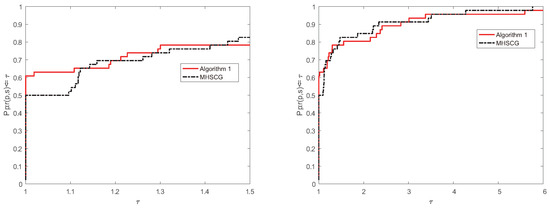 Performance profiles of Algorithm 1 and the MHSCG method in NFG case.