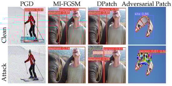 - Chow, K.-H.; Liu, L.; Loper, M.; Bae, J.; Gursoy, M.E.; Truex, S.; Wei, W.; Wu, Y. Adversarial objectness gradient attacks in real-time object detection systems. In Proceedings of the 2020 Second IEEE International Conference on Trust, Privacy and Security in Intelligent Systems and Applications (TPS-ISA), Atlanta, GA, USA, 28–31 October 2020; IEEE: New York, NY, USA, 2020; pp. 263–272. [Google Scholar]