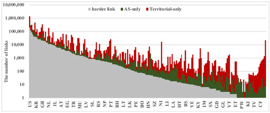 When the total counts of routers within AS and territorial networks are held constant, a larger value of indicates a higher number of routers shared between the AS network and the territorial network of country K. A higher value of signifies greater congruence between a country’s AS and territorial networks, suggesting a more cohesive and potentially secure national network infrastructure.