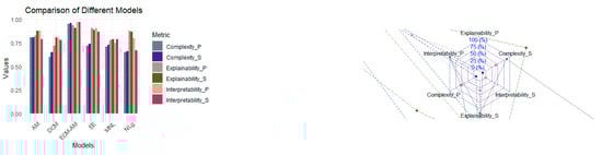 In Table 9, focusing on computational efficiency, the proposed model demonstrates superior performance in terms of training time, memory usage, and inference speed for both phone acceleration and static acceleration datasets. The visual representation can be seen in Figure 11. Notably, the proposed model achieves the shortest training time, lowest memory usage, and competitive inference speed, indicating its efficiency in learning from the data and making predictions. Moving to Table 10, which delves into the explainability, interpretability, and complexity of the models, the proposed model consistently outperforms existing models across all metrics for both phone acceleration and static acceleration datasets (also see Figure 12). It achieves the highest scores in explainability and interpretability, indicating its ability to provide clear insights into model decisions while maintaining a balanced level of complexity. These results highlight the transparency and comprehensibility of the proposed model.