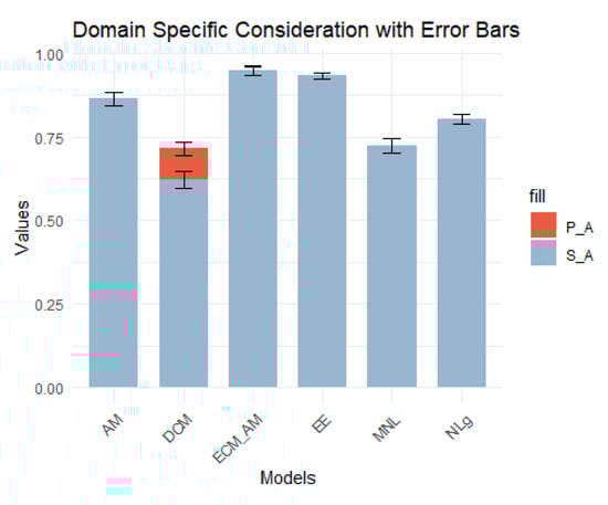 Visual illustration of domain-specific consideration of different models with error bars.
