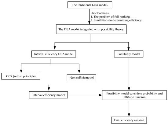 The model presented in this paper combines the strengths of DEA and possibility theory. Both the DEA model and the possibility theory model are individually enhanced and integrated into a unified framework. The theoretical model framework can be illustrated as shown in Figure 5.