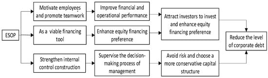 First, ESOP has the potential to reduce debt levels by motivating employees and promoting teamwork to improve corporate performance. An ESOP enables employees to assume the dual identities of laborers and owners, linking their personal interests with those of shareholders. It also enhances the motivation and capacity of employees to engage in corporate governance, thereby alleviating interest conflicts among shareholders, managers and employees. This, in turn, reduces agency costs and improves the financial performance of enterprises [8,27]. Concurrently, the ESOP fosters a positive environment for mutual learning and supervision among employees [48], facilitates teamwork, enhances employee motivation and satisfaction with their work, and thus improves the business performance of enterprises [49]. An improvement in the company’s financial and business performance can lead to an increase in operating profit and shareholder wealth, thereby providing the company with greater financial flexibility and capacity to repay debts. Additionally, it can attract external investors to purchase the company’s shares, which may in turn influence the management’s preference for equity financing and contribute to a reduction in the company’s overall debt levels.