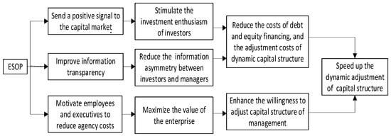 In conclusion, the implementation of ESOPs can reduce the adjustment costs of capital structure for enterprises by reducing the costs of debt and equity financing [17,56], thereby accelerating the adjustment speed of capital structure. Therefore, this paper proposes the following hypothesis: