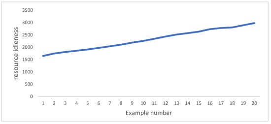 Figure 7 shows the effect of increasing the upper bound on the objective functions. In fact, by increasing the upper bound, the percentage of changes is shown in the Number of Pre-empted Activities, Resource Consumption, Resource Idleness, and Project Total Time. In Figure 7, the maximum delivery time has increased, which increases the total project time, while it has no effect on pre-emption activities, that is, it does not increase it, and on the other hand, it does not cause idleness of resources.