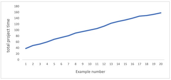 As shown in Figure 3, with the increase in dimensions, the total project time also increases.