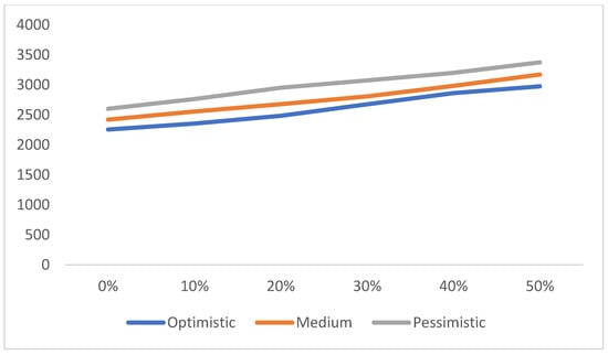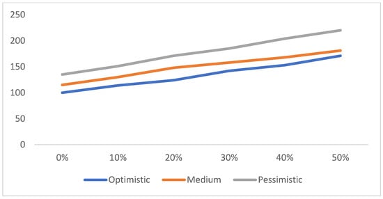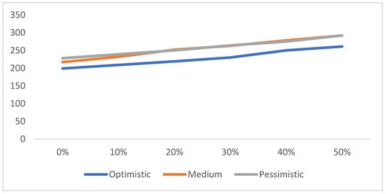 Figure 9 is designed based on the information in Table 11. It shows the Project Total Time under three scenarios.