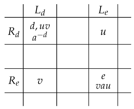 which means that . It is easy to verify the idempotency of ε. The -classes , , , and are shown in the ‘eggbox’ diagram in Figure 3.