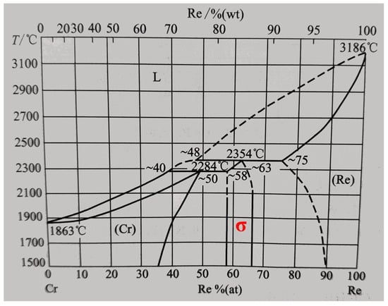 Phase diagram of Cr-Re system. The phase, which was not originally marked, has been identified and highlighted in red.