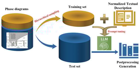 This paper introduces a hierarchical sampling-based instruction fine-tuning framework that enables pre-trained LLMs to automatically perform phase diagram annotation tasks. This end-to-end automation process effectively addresses the shortcomings of traditional manual annotation methods in materials science, particularly in updating and batch processing. High-quality phase diagram images and their corresponding expert descriptions are collected from reference books and preprocessed, including error correction, removal of redundant information, and content supplementation. These preprocessed phase diagrams and textual descriptions are then integrated into a golden dataset. According to our design, a portion of the samples from the golden dataset is selected for LLM training. The pre-trained LLM is then used for the automated annotation of phase diagrams in the test set. Our methods significantly improve the LLM’s accuracy in performing phase diagram comprehension tasks on the test set, achieving an average cosine similarity of 0.8737. Extensive experimental validation demonstrate that the pre-trained LLM’s performance on phase diagram comprehension tasks improves by 7% on the test set.
