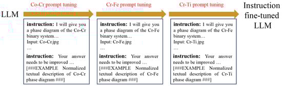 In the “prompt tuning” stage, assuming the Co-Cr phase diagram and Cr-Fe phase diagram are extracted from the simple system, and the Cr-Ti phase diagram from the complex system, these three sets of data (phase diagrams + expert textual descriptions) serve as demonstration examples for the tuning of the LLM, as shown in Figure 9.